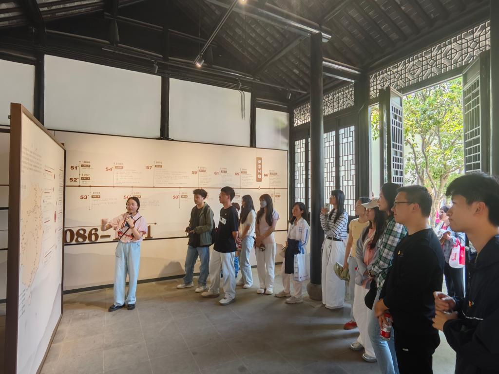 东坡书院是北宋文豪苏东坡晚年讲学之地,其“为官以民为本、治政以廉为纲”的精神跨越千年仍熠熠生辉。踏入书院青砖黛瓦的院落,党员们驻足于“东坡廉政故事”展板前,从“密州救灾拒建楼台”到“徐州抗洪亲守堤坝”,字字句句勾勒出东坡先生“苟利国家生死以”的赤子之心。研究生党员们走进东坡书院,彷佛穿越千年时光,置身于东坡先生廉政治学的场景中。党员们通过书画展览、廉政故事展板和互动装置等多维度方式详细学习东坡廉洁为官,清廉治家的高尚情怀。