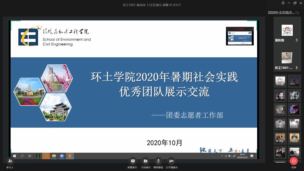 为帮助2020级新生了解并学习社会实践活动,环境与土木工程学院于2020年10月21日在线上开展了社会实践展示交流活动,环境与土木工程学院20级全体新生于线上参与学习。在辅导员何涛的组织下,由张磊、毛鹏涛、舒抒等同学为代表的优秀团队通过线上展示交流的形式与av片