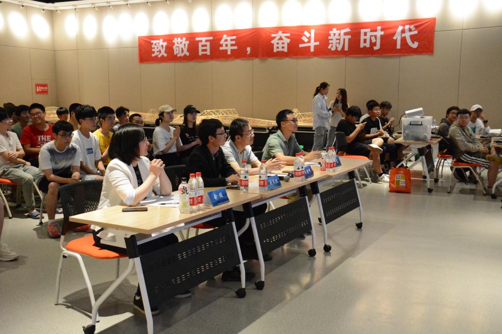 环境与土木工程学院第六届“扬建党100周年之帆,载凝结创意之梦”结构模型加载大赛决赛在北区大学生活动中心顺利举行。大赛由环境与土木工程学院土木工程系王登峰、刘文化、俞设、成虎老师担任评委。2019级、2018级土木工程专业学生共组成22支队伍参赛。