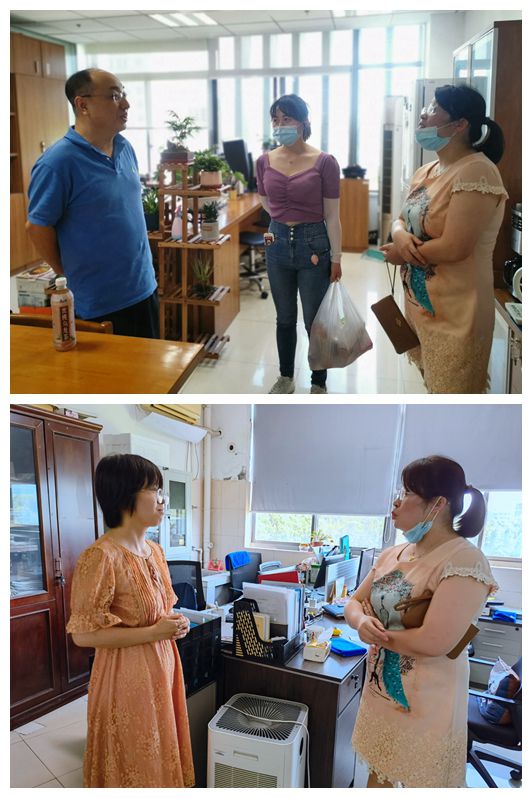 胡娟副书记一行来到本科生宿舍园区,看望因为科研、学习和疫情等原因留校的学生,详细询问了学生假期留校生活、学习的情况,了解他们的实际需求,鼓励他们安心学习、遵守疫情防控要求,非必要不外出。在实验室,老师们与课题组指导老师、留校同学进行了深切交流,了解他们的科研进展情况,询问生活状况,嘱咐大家在疫情防控期间要按照统一部署,提高防范意识,做好科学防护,及时关注权威发布,经常与辅导员、导师沟通。