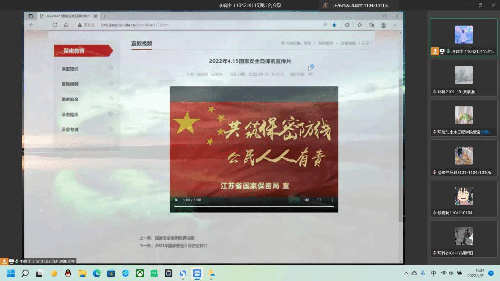 4月15日是全民国家安全教育日,在以习近平同志为核心的党中央坚强领导下,我们走出一条中国特色国家安全道路,开创了维护国家安全的崭新局面。 习近平总书记曾强调:“保证国家安全是头等大事”。国家安全是安邦定国的重要基石,是人民安居乐业的保证,维护国家安全是全国各族人民根本利益所在。2022年4月21日,学院组织学生观看学习《国家安全案例教育视频》、《国家安全日保密宣传片》等国家安全教育视频,学生充分认识到国家安全教育的重要性,对于维护国家安全具有重要意义。2022年4月22日,学院组织学生参观位于av片