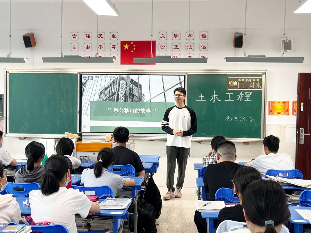 首先,王晓菡老师进行土木工程专业介绍,主要包括专业方向设置,专业特点,就业去向以及作为土木工程师需要具备的能力和素质。她勉励同学们树立远大理想,建设美好家园。随后,林瀚向格致中学的同学们介绍自己进入大学阶段的学习、参加的各项活动,取得的各项成果;分享自己曾经备战中考和高考的经历、经验、体会,激励在场的各位同学要努力学习,坚定理想信念,点燃理想之火。最后,在互动交流阶段,王晓菡老师和林瀚同学就同学们所关心的中考复习、高中学科学习、大学学科竞赛以及课外活动等方面进行了答疑,并结合自身经历为大家提出相关建议。