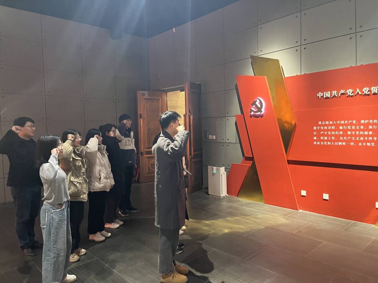 党委副书记副院长胡娟、本科生环境专业党支部书记李东辉、本科生环境专业党支部宣传委员周期、分团委书记薛羚伟和本科生环境专业党支部党员于无锡博物院开展了“读原著强理想信念 观事迹明挺膺担当”为主题的党日活动。