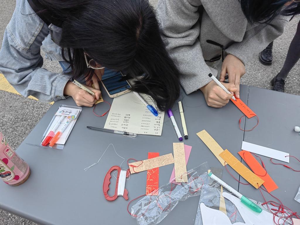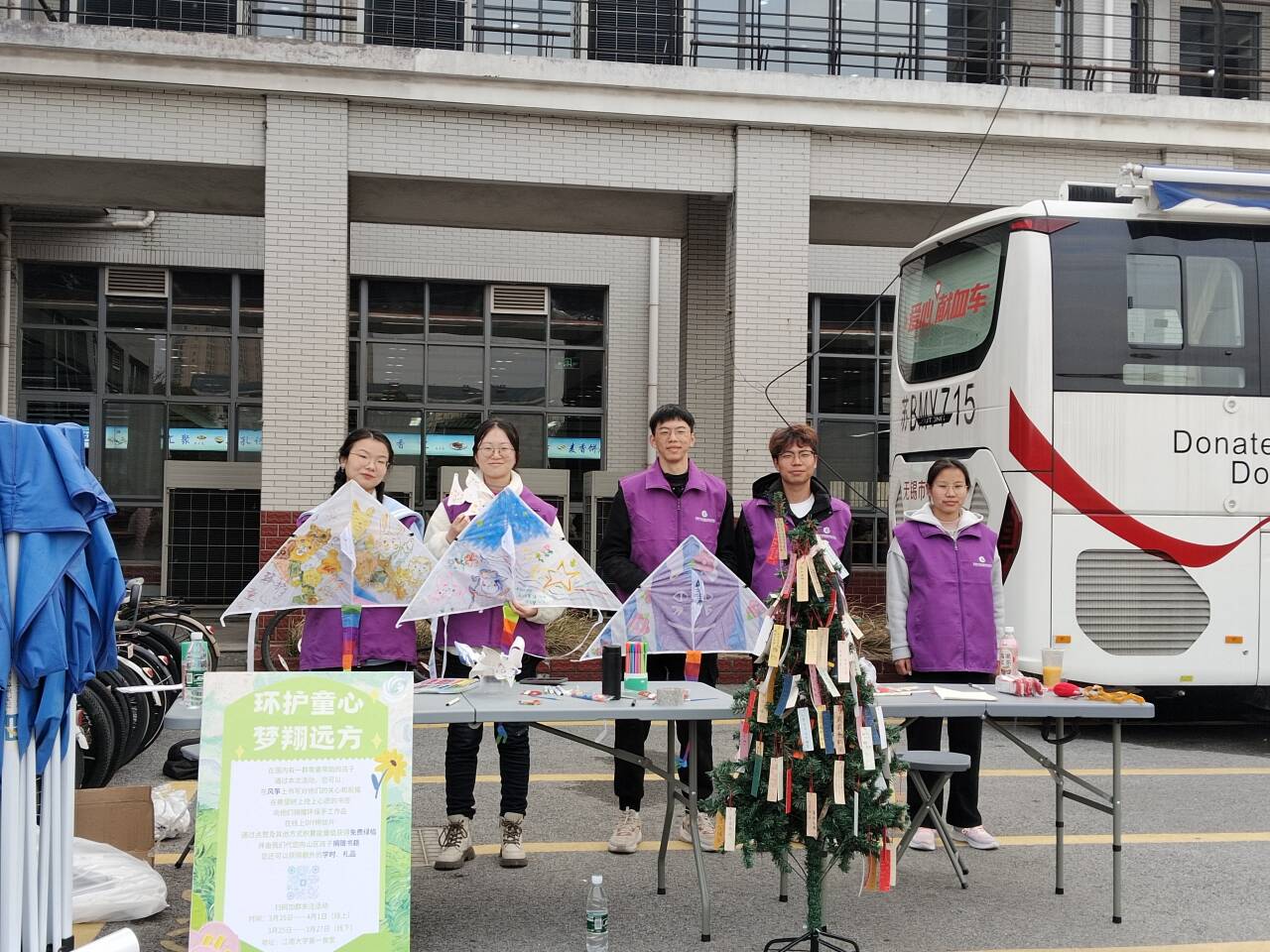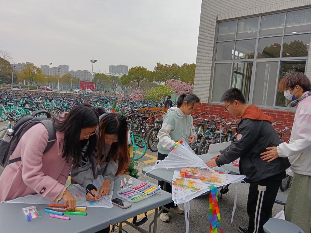 举办的“环护童心,益童前行”爱心活动在学校一食堂旁的空地上热烈举行。本次活动吸引了众多学生的积极参与,旨在通过写祝福语、绘制风筝和风车等方式,为山区儿童送去关爱与温暖。