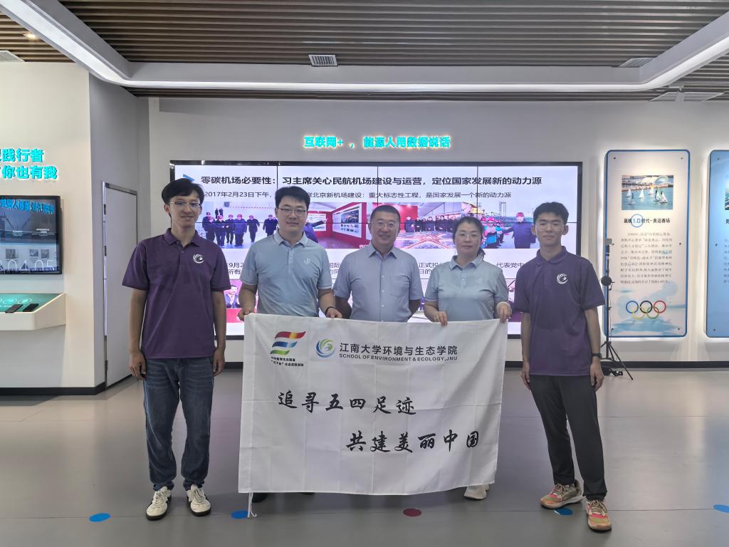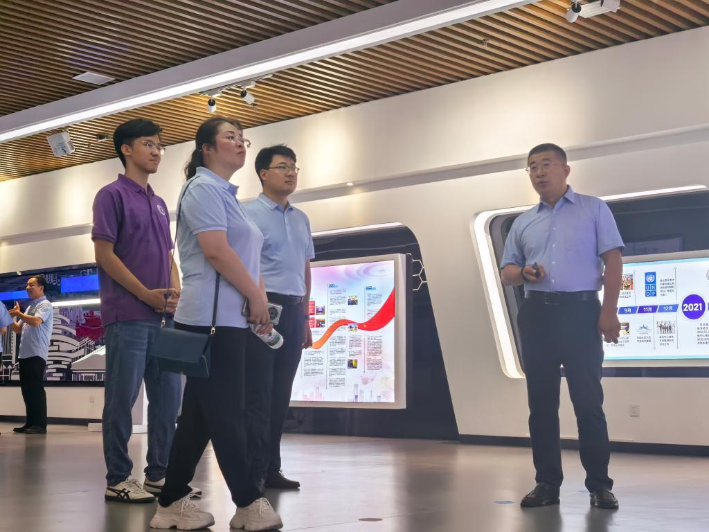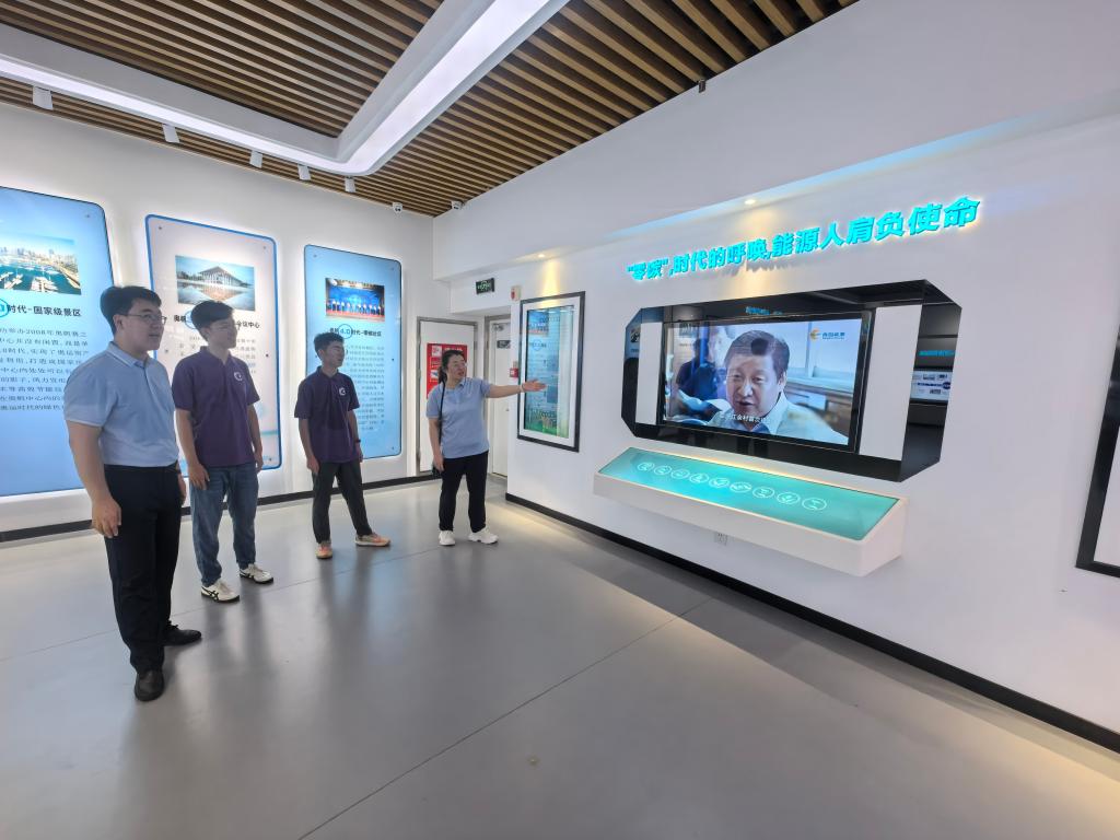 社会实践团首先前往青岛市能源科技馆参观学习。在科技馆的大屏幕前,中国建筑节能协会副总工黄锦向大家介绍“双碳”战略目标的含义和部署,并详细讲解了我国不同发展阶段,重大标志性工程中的零碳实施路径。胡娟向成员们介绍了习近平生态文明思想的发展脉络,并以浙江余村为引入,阐释了“绿水青山就是金山银山”的理念的科学内涵与深远意义。