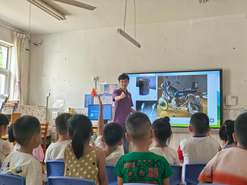 在李沧区夏庄路幼儿园,社会实践团成员通过现场和直播的方式为幼儿园二年级五个班的小朋友们开展垃圾分类主题宣讲活动。沈凯围绕暴增的的垃圾、什么是垃圾分类、垃圾如何变废为宝等,向幼儿园的小朋友们讲解生活中不正确处理的垃圾对环境的影响和实行垃圾分类的必要性,最后通过趣味互动,带领小朋友们体验了垃圾分类。