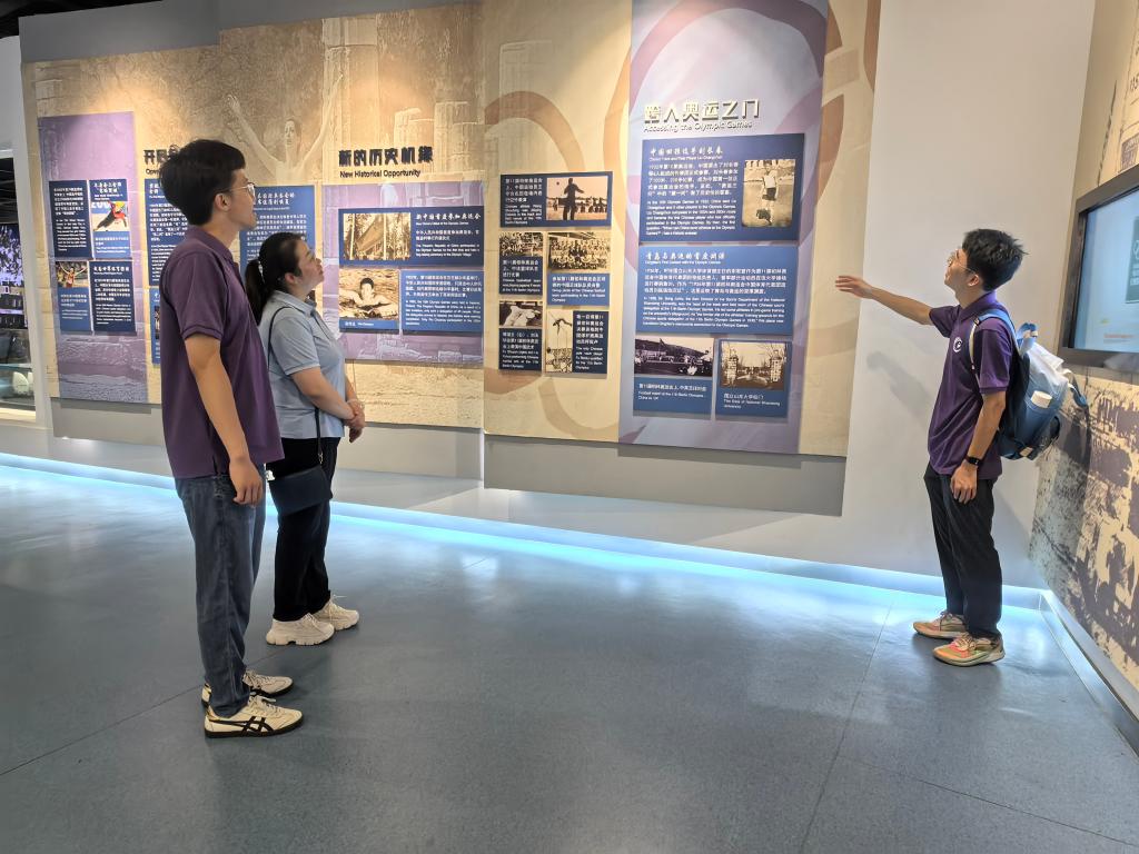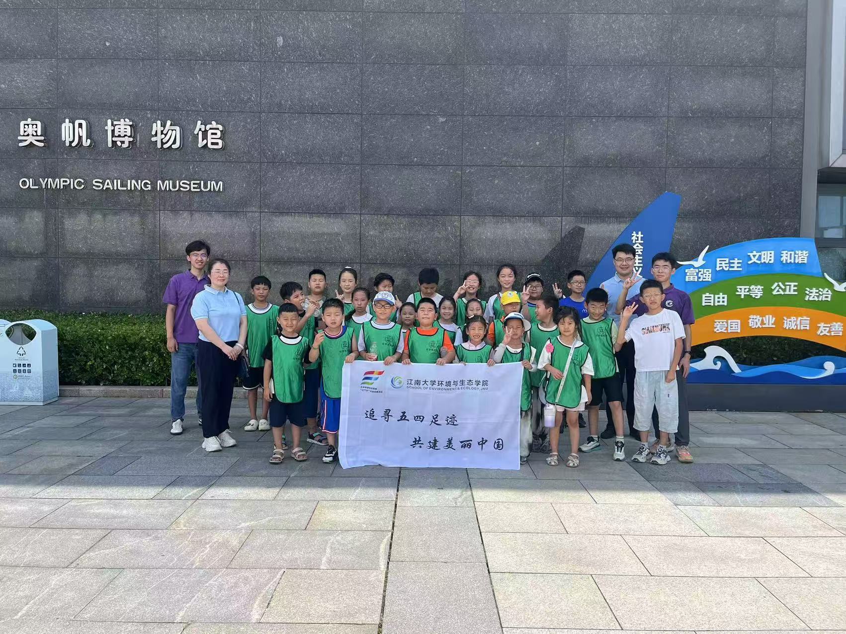 社会实践团成员们和优学悦托管的小朋友们一同参观了奥帆博物馆,馆内展览面积约3800平方米,通过实物、图片等资料为基础,以现代化展示手段为补充,形成室内展览与室外场景互动的模式。博物馆中的丰富展品见证了帆船运动的发展历程,也将华夏儿女逐梦奥运,突破一个又一个纪录的故事徐徐道来。胡娟向大家讲述了奥运会在中国的发展历程,从刘长春只身参会到2008年举办夏季奥运会,2022年举办冬季奥运会,到如今中国健儿驰骋赛场,用拼搏进取的体育精神自信地展现中国风采,中国裁判用专业和认真,秉公执赛,发出中国声音。