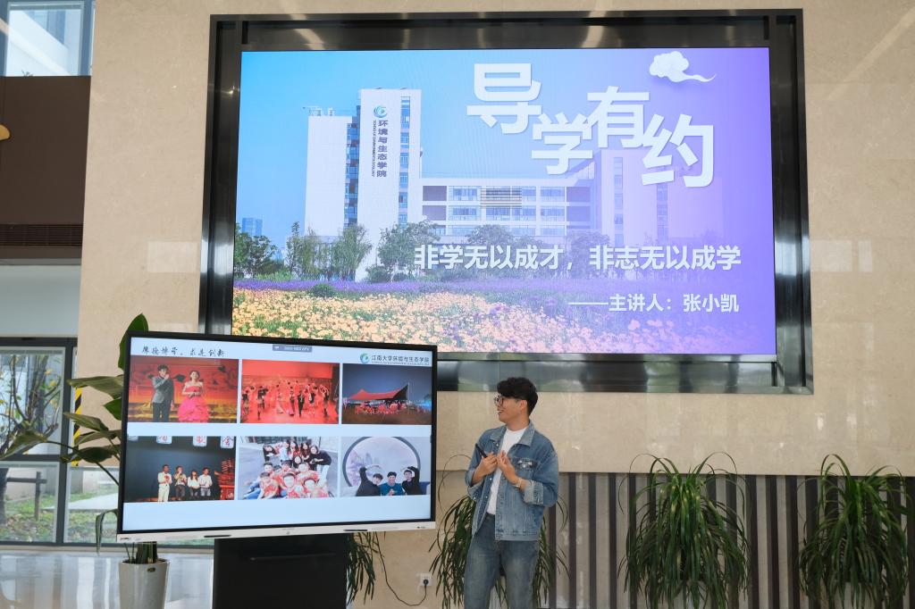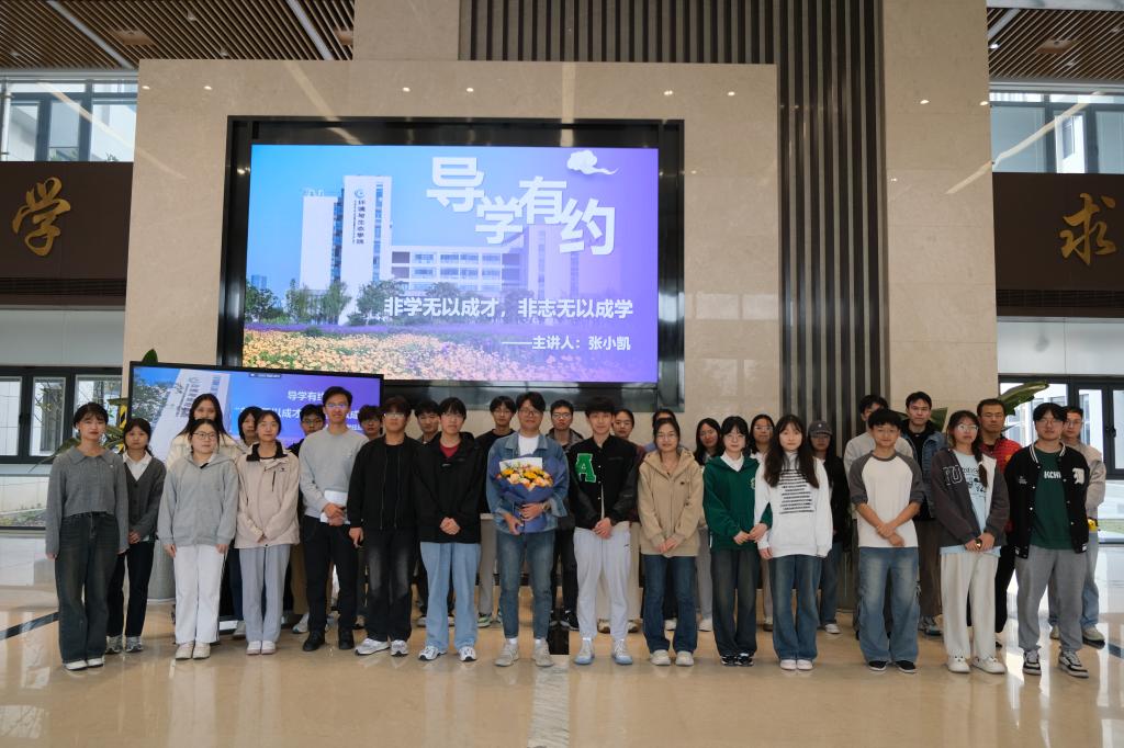 于11月8日在东氿校区成功举办了2024年“导学有约”系列活动第一期,本次讲座邀请到张小凯副教授,他分享的主题是“非学无以成才,非志无以成学”。此次活动由研究生会执行主席沈凯主持,同学们自发报名参加,现场氛围轻松活跃。