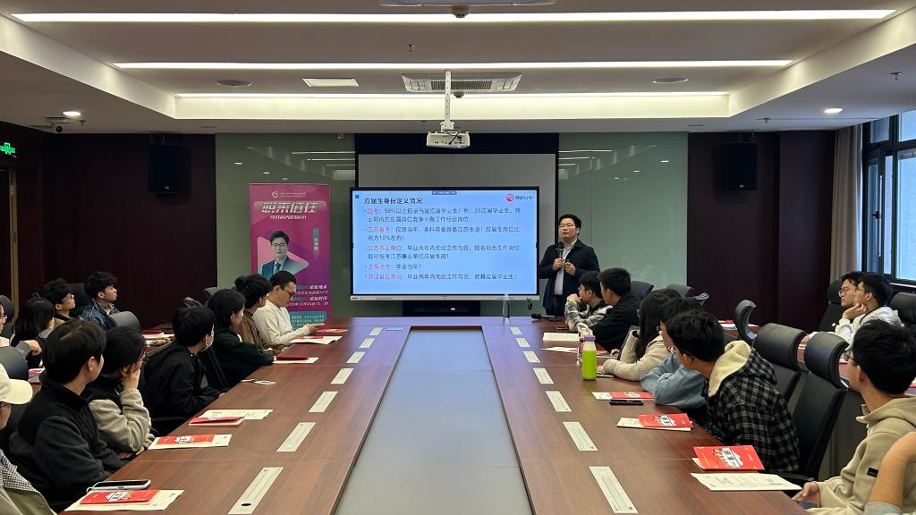 在清源楼A210开展“职来值往—生涯领航与就业指导”专题讲座。本次讲座聚焦公务员与选调生招考政策,邀请资深公考培训老师吕洪刚担任主讲,40余名学生参会,讲座由辅导员李猛主持。