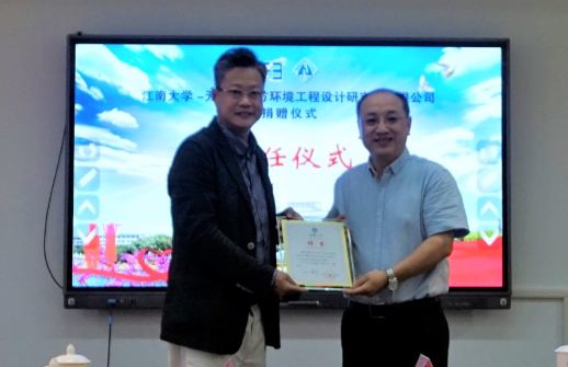 —无锡市东方环境工程设计研究所有限公司捐赠仪式在校协同创新中心举行。无锡市东方环境工程设计有限公司董事长郑岩一行、av片