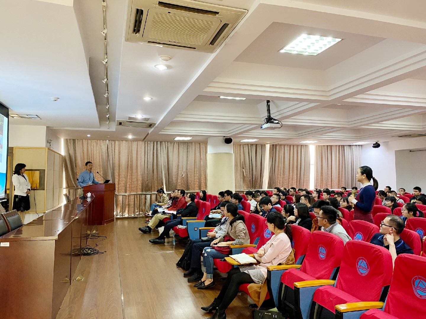 领导首先对张徐祥教授的到来表示热烈欢迎,李激教授简要介绍了张教授所获得的奖项以及科研成果。报告期间,张教授作了题为“水环境中微生物耐药基因组研究”的学术报告,张教授首先用生动的实例向大家介绍了内分泌干扰物、抗生素等高风险污染物的危害及国内外抗生素使用现状;接着介绍了全球热点问题,即抗生素耐药基因(ARGs)作为新型污染物的识别与防控,通过宏基因组和质粒宏基因组技术揭示ARGs在污水处理厂、受纳水体和自来水厂中的分布和归趋;最后提出了目前针对水环境中生物污染物亟需解决的科学问题,如健康风险评估、附存状态及其与常规污染物的关联特征等。张教授在为我们带来新方法新理念的同时也让我们意识到环境中的每一个因素都与我们息息相关,同时他的研究思路也对同学们以及青年教师未来如何开展研究工作有很好的启示作用。最后,张教授与在场师生进行了热烈的学术讨论,并逐一回答了现场提问。