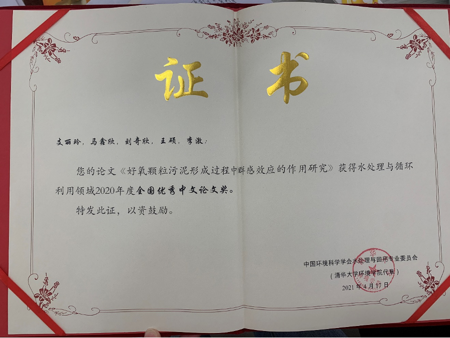此外,李激教授团队研究生支丽玲、马鑫欣和刘奇欣等撰写的论文《好氧颗粒污泥形成过程中群感效应的作用研究》获得全国优秀论文奖。多年来,av片