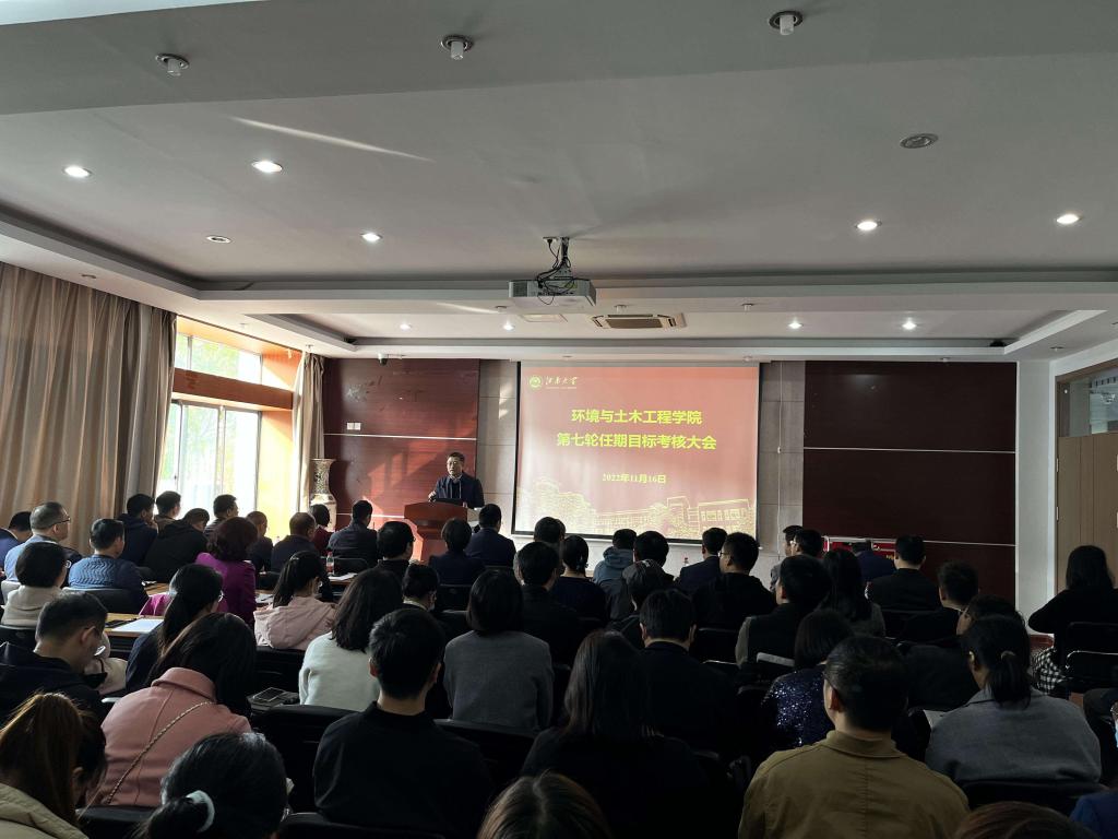 为全面检查第七轮任期目标的实施情况,11月16日上午,环境与土木工程学院在D303会议室举行2020-2022年度任期目标考核大会。考核组组长、校长陈卫,考核组副组长戴月波,成员张梁、徐学明、刘龙,秘书王维青出席会议,学院全体教职工参加会议,会议由考核组副组长校党委副书记戴月波主持。