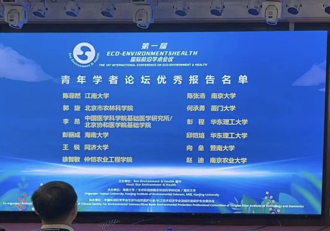 2023年4月14-16日,第一届Eco-Environment & Health国际前沿学术会议在海南省海口市举行。来自全国高等学校及科研院所的300余名学者参加了会议。环境与土木工程学院王震宇教授和陈菲然副教授作为特邀嘉宾分别做了“新污染物的环境健康研究”的大会主旨报告和“纳米材料对农业环境健康的调控机制”的青年论坛主题报告。陈菲然副教授入选“青年学者论坛优秀报告”名单。
