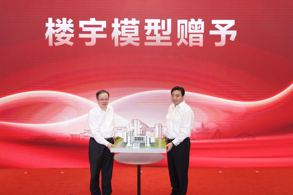 学校的快速发展离不开企业的鼎力支持,金山环保捐资助力新校区发展建设,保障优化科研条件,朱庆葆向钱盘生赠送楼宇模型。周云龙、钱盘生共同为楼宇题记揭牌。环境与土木工程学院书记、院长和徐韬分别为江苏省卓越工程师校外培养基地、党建学习教育实践基地揭牌。立足新起点,展望新未来。朱庆葆在讲话中向长期以来关心支持av片