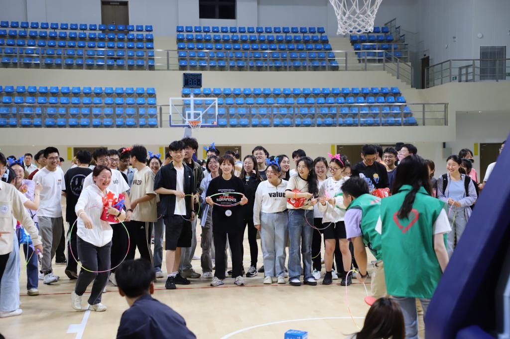 奔跑是青春的姿态,运动是生命的见证。开跑前,领跑员带领全场人员做热身运动。孙彗博和李澳带来的歌曲《夜空中最亮的星》将现场气氛推到高潮。随着环境与土木工程学院党委书记李艳鸣枪开跑,所有参赛选手井然有序从起点出发开始奔跑,沿着校园里彩虹跑道,通过沿途完成三个打卡点和相应的任务获得荧光棒,再将其随意组装拼合,在体育馆进行套圈游戏获得属于自己的惊喜盲盒。