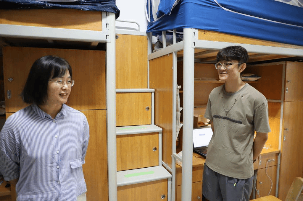 学院一行走访了学院新生宿舍,深入了解同学们的入住和适应情况。学院领导和老师首先对23级新生们的到来表示热烈欢迎,实地感受同学们的生活环境,认真询问同学们对学校环境的适应情况,亲切聆听同学们的情况,记录他们反映的困难与问题,并耐心解答。院党委书记李艳对同学们提出了殷切期望,希望同学们能尽快熟悉校园环境,树立远大志向,日后为国家做出重大贡献。其后,院长王震宇补充道,同学们在学习或生活中遇到问题,要及时与导师和辅导员进行沟通解决,以积极、健康的面貌融入到新学期的学习与生活中。随后学院党政一行前往学院楼学生自习室和实验室,给学生们送去殷切关怀和深切慰问。