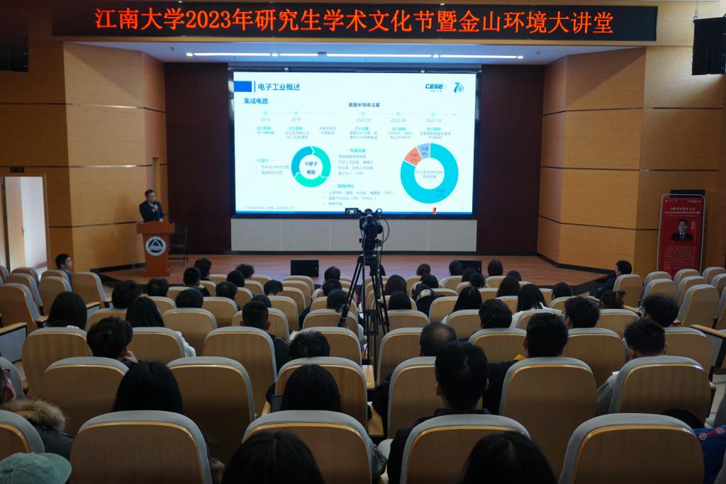 2023年研究生学术文化节江南讲坛暨金山环境大讲堂于东氿校区清源楼A101成功举行。本次讲座主题为“电子工业水处理系统关键问题及技术进展”,由中国电子系统工程第二建设有限公司副总工程师熊江磊先生担任主讲人,讲座由环境与土木工程学院副院长缪恒锋教授主持。