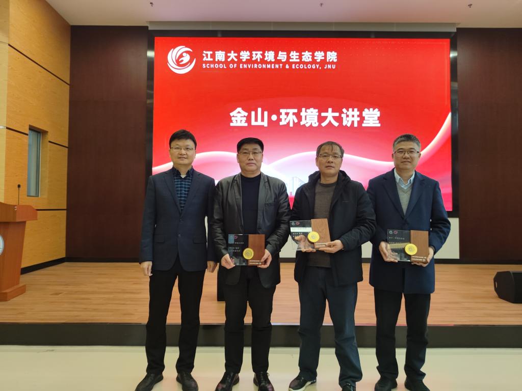 何锋教授主持并代表金山·环境大讲堂向与会嘉宾赠送纪念章。