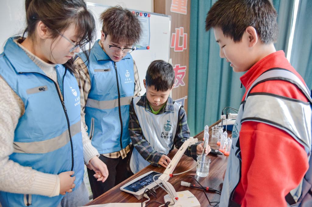 由郁红艳老师带队,志愿者们从目前水污染现状、国际清洁河流日的由来、水污染治理的方法、水的电导率及其测定方法和日常爱护水资源五个方面为小学生们进行了保护水资源的科普讲解,让同学们深刻认识到我国水资源短缺的现状及水污染的危害,从而认识到保护水资源的重要性。此外,志愿者们还详细讲解了不同水质的电导率与检测的小实验,从方法原理、仪器步骤到数据记录都让同学们更好的了解到了不同水样电导率的测定工作。科普过程中同学们积极参与互动,对知识充满了热情。