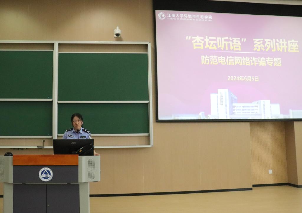 在二教2A127召开“杏坛听语”系列反诈防骗知识讲座。本次讲座由雪浪派出所民警戴警官主讲,2021级、2022级、2023级本科生参与本次活动。av片