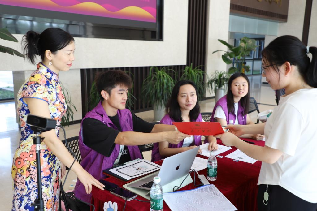 新生报到当日,学院在蠡湖校区和东氿校区分别设置了报到点,热情迎接新生们的到来。学院为前来报到的新生发放精心制作的主题纪念帆布包、笔记本、卡套、新生心理手册及研究生手册,帮助新生了解学校的校规校纪、奖惩制度,更好的融入和适应新的学习生活环境。辅导员周期老师和志愿者们积极参与其中,耐心解答新生们的疑惑,助力他们顺利入学。志愿者们整齐着装,脸上洋溢着热情的笑容,热情引导新生们到报到点办理报到手续。为了帮助和鼓励有需要的新生,学院设立了“2024迎新绿色通道”,为新生提供便捷服务,助力学生安心无忧入学。