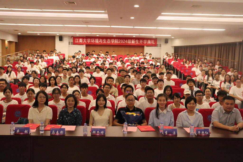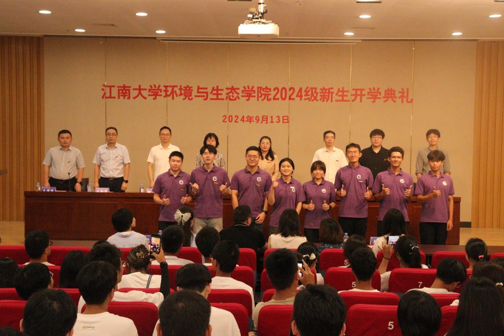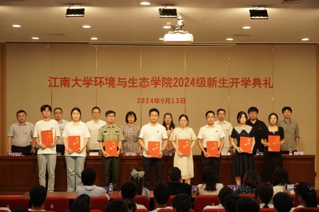 党委书记李艳,副院长邹华、缪恒锋、王新华,环境科学系副主任张程,环境工程系副主任王寒,教师代表王传洗,2024级新生班主任、辅导员、副班主任以及全体2024级本硕博新生出席典礼。典礼由党委副书记兼副院长胡娟主持。