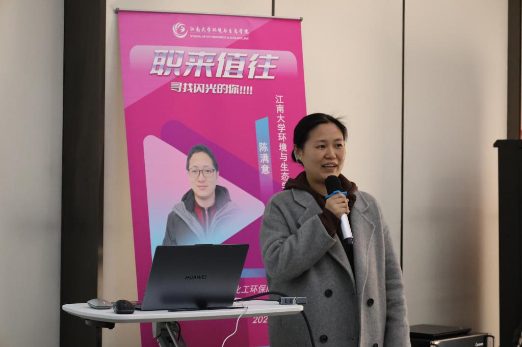 董事长蒋伟群在致辞中强调,环保行业需要既懂技术又懂市场的复合型人才。他结合行业趋势,鼓励学生择一业,事终身,既然选定环境专业,就坚定不移的走下去,保持自主学习、终身学习的好习惯,将专业知识与市场需求结合。邵汝英所长分享了蓝必盛在重金属污染防治、碳中和实践中的经验,她通过具体案例,解析了环保技术研发如何帮助企业实现经济效益与环境效益双赢,引发师生热烈讨论。