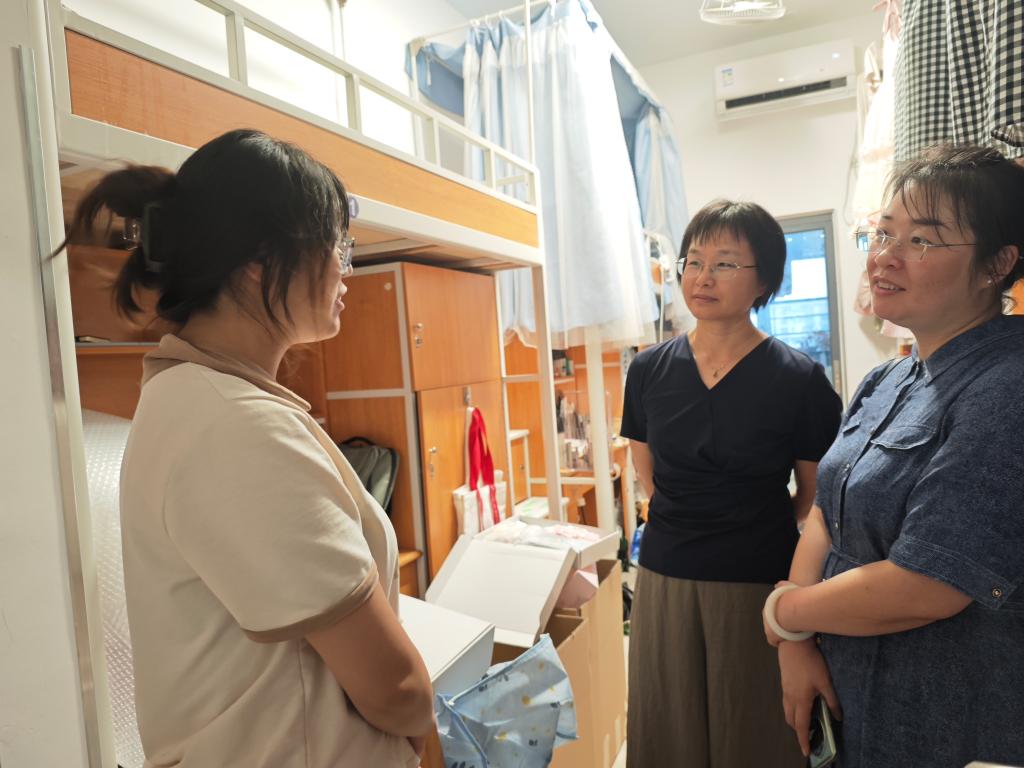 心系学子,新居慰问情暖人心。搬迁结束后,学院领导深入东氿校区学生宿舍,与同学们亲切交流,重点了解大家对新环境的适应情况和遇到的现实问题,倾听同学们反映的问题和建议。小件设施报修等能立即协调解决的,当场联系宿管或维修部门处理;需要后续跟进解决的,详细记录在案,明确责任人和解决时限,确保“事事有回音,件件有着落”。