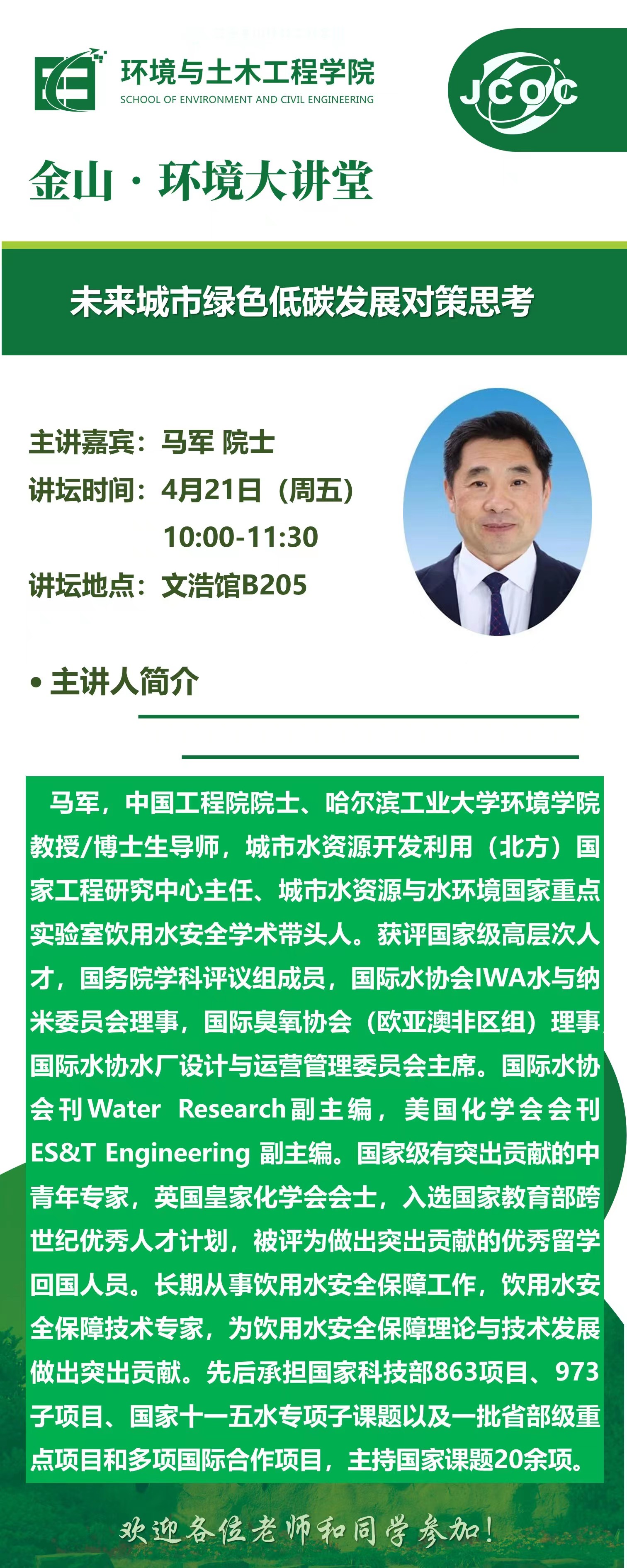 金山·环境大讲堂--马军:未来城市绿色低碳发展对策思考
