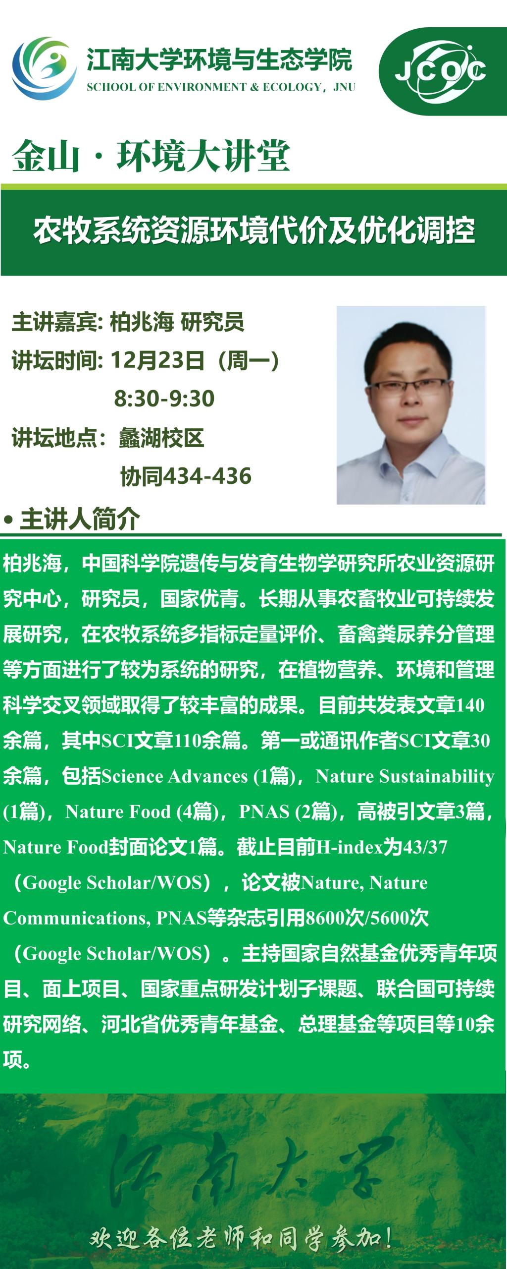 金山•环境大讲堂—柏兆海:农牧系统资源环境代价及优化调控